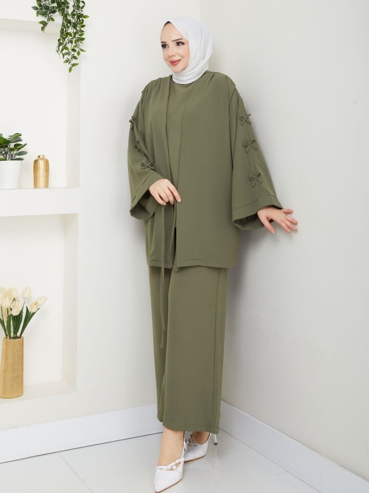 MANKEN 1,68 - 60 KİLODUR.; ÜZERİNDEKİ ÜRÜN 1 BEDENDİR.; 1. BEDEN S-M 2. BEDEN L- XL DIR .; - Yüksek kalite kumaştan üretilmiş, özel tasarım üçlü takım ile şıklığınızı koruyun.; - Kemer detayı sayesinde belinizi vurgulayarak feminen bir siluet oluşturur.; - Paket içeriği 3 parçadan oluşur; her bir parça tesettür giyim severler için idealdir.; - 30-40°C sıcaklıkta yıkama imkanı sunarak kolay bakım sağlar.; - Yaz sezonuna uygun hafif ve nefes alabilen dokusuyla konforlu bir kullanım sunar.; - Genç yaş grubuna hitap eden modern tasarımla günlük veya gece kombinlerinizde rahatlıkla tercih edebilirsiniz.; - Bağlama veya bağcık detaylarıyla kişisel zevkinize göre ayarlama yapabilirsiniz.; - Oversize kesimiyle rahat hareket etme özgürlüğü tanırken stil sahibi görünmenizi sağlar.; - Tesettür giyim koleksiyonunun vazgeçilmez parçası olarak dikkat çekerken poplin dokumasıyla dayanıklılık sunar.; - Düşük kol tipi ve bol paça tasarımıyla trendleri takip ederken aynı zamanda rahatlığından ödün vermezsiniz.; - TR menşeli bu ürünümüz yerel üretim avantajını sizlere sunarken ince kumaşıyla yaz aylarının vazgeçilmezi olacak.;